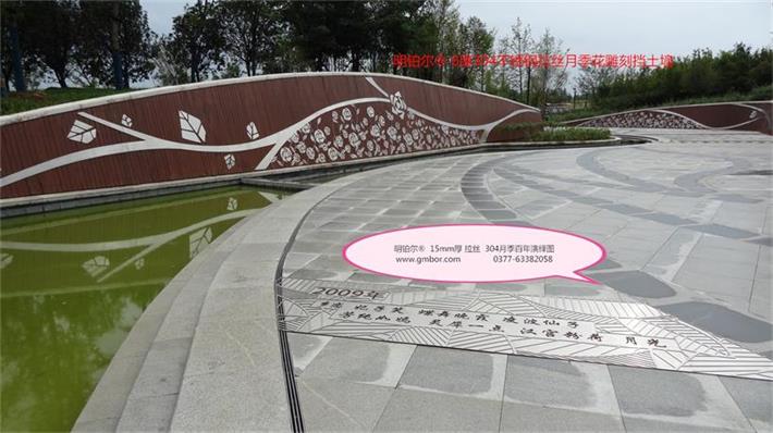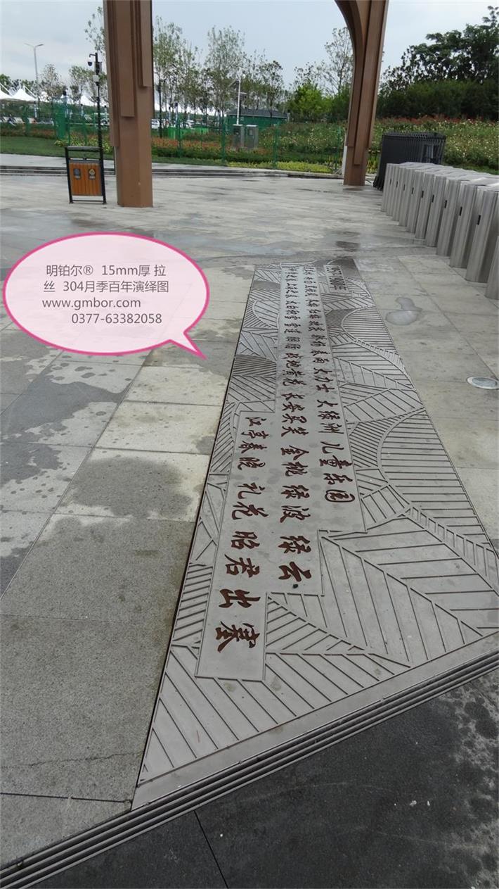 明鉑爾?不銹鋼月季園主入口大門304不銹鋼10毫米厚欄桿,6毫米厚水池10塊月季花圖,利用不銹鋼的拉絲紋路反光色差經(jīng)驗,解決了北京設(shè)計院林博士要求很難做到的不銹鋼激光雕刻2毫米深度的月季花圖效果,經(jīng)過我數(shù)10次的大樣,努力,研究終于做出了最佳理想的效果,出乎意料之外的精美,背后多少時間的付出,不惜一切代價的努力方能成就精品。1957年至今13塊月季名稱地雕,近200平方擋墻6毫米月季花雕刻圖,這些所有的產(chǎn)品沒處細節(jié),每一條線都經(jīng)過CAD在電腦修改檢查再修改再檢查,打樣再修改再細化的一個漫長的圖紙修改過程最終敲定的方案效果,擋土墻鉚釘內(nèi)陷,我們加焊接整體再拉絲處理,每一處方案都是創(chuàng)最優(yōu)品質(zhì)去展現(xiàn)給南陽不銹鋼月季藝術(shù)的高水準,為迎接全國人民的到來參觀,憑著高要求做我們最優(yōu)的產(chǎn)品奉獻給南陽這片土地…